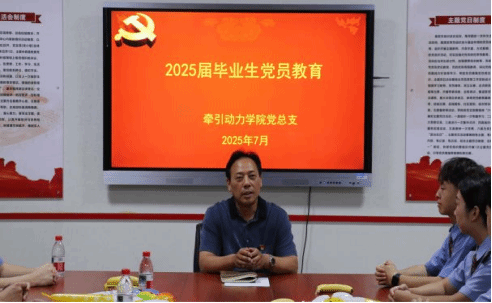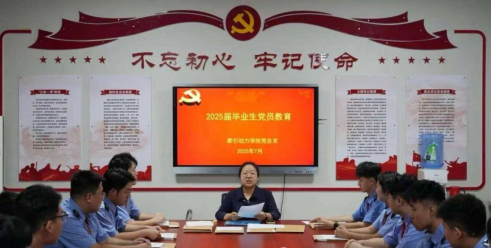 在2025届毕业生党员教育中,党总支书记李贞伟与党总支组织员杨若进行党员教育。党总支书记李贞伟结合党的二十大精神与铁路行业发展趋势,阐释党员在新时代的责任与义务,强调要始终牢记“人民铁路为人民”的宗旨。党总支组织员杨若勉励毕业党员保持终身学习的态度,在工作中严守安全底线,以实际行动践行党员承诺。毕业党员们全神贯注聆听,现场学习氛围浓厚。