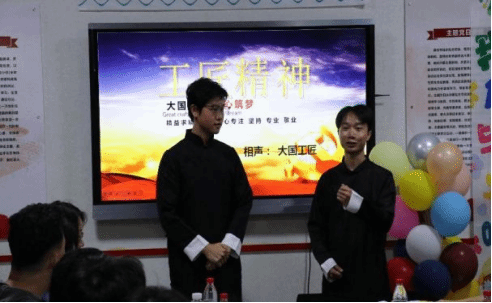 在回忆视频的播放中,毕业沙龙开始。大一学予以精彩表演为毕业生饯行。相声《大国工匠》率先登场,在欢声笑语中传递严谨细致的工匠精神与铁路工作安全的重要性。随后一曲《送你一朵小红花》温情开唱,用清澈歌声传递敬意。这场表演,不仅是青春与匠心的传承,更寄托着对学长学姐未来征程的美好祝愿。