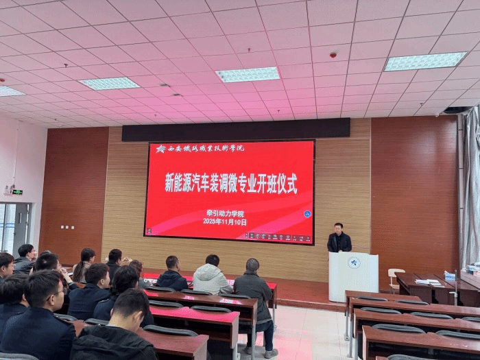 11月10日下午,牵引动力学院在牵引楼105阶梯教室召开“新能源汽车装调” 微专业开班仪式。牵引动力学院院长林辉、各教研室主任、微专业授课全体教师以及100余名选课学生参加。